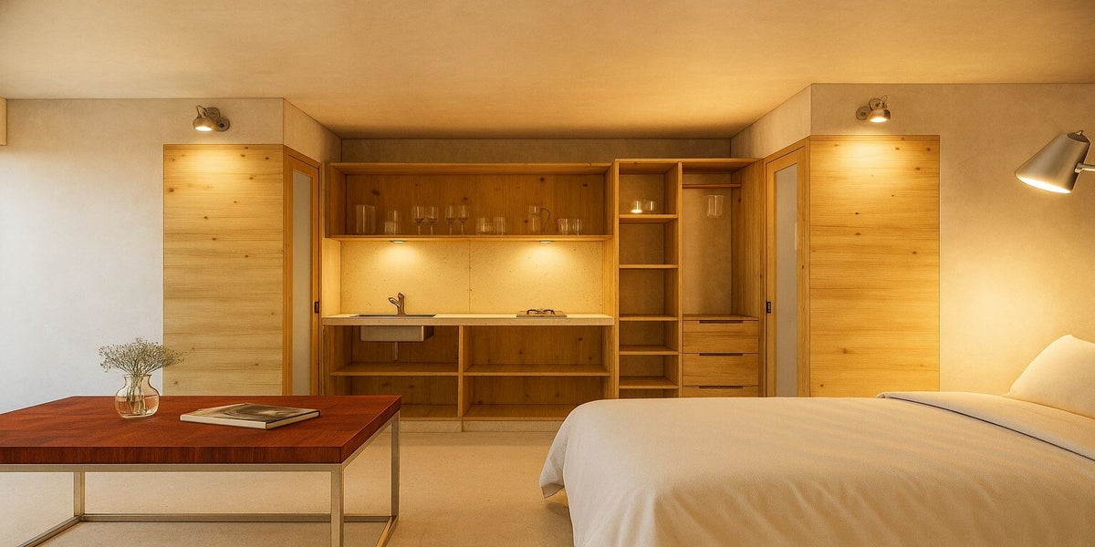 Este Mini Depa es una Propuesta de Vivienda Minima asequible que busca darle una opción a la necesidad de vivienda para estancias cortas o para estudiantes o para parejas. Diseñada como un Monoespacio que hace mas versatil y funcional, pero con lo necesario para el dia a dia ya que cuenta con Medio Baño, Regadera indepediente, Cocineta con espacio para Refrigerador, Parrila electrica y Tarja